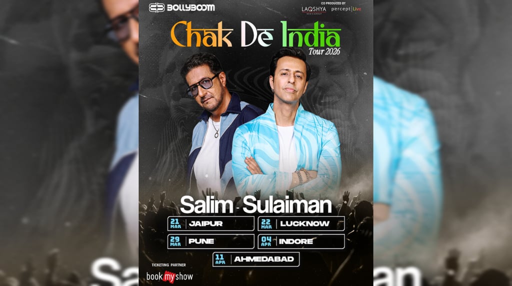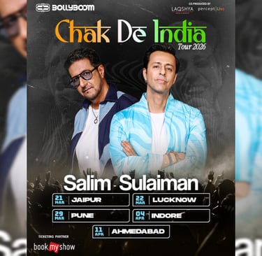 Mumbai, Maharashtra, India: Percept Live, in partnership with Laqshya Media Group, proudly announce Bollyboom’s ‘Chak De India Tour’ - a monumental, multi-city ticketed concert tour by legendary composer duo Salim-Sulaiman, marking one of the most anticipated live music spectacles in India. Curated under the celebrated Bollyboom Intellectual Property, the tour celebrates an extraordinary 33-year musical legacy that has shaped generations, defined Bollywood’s soundscape, and united millions through music.